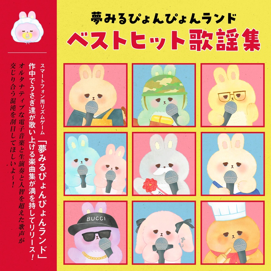 スマートフォン用リズムゲーム「夢みるぴょんぴょんランド」作中でうさぎ達が歌い上げる楽曲集が満を持してリリース!オルタナティブな電子音楽と生演奏と人知を超えた歌声が交じり合う混沌を刮目してほしいよ~!